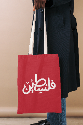 Palestine Design Tote Bag, Palestine in Arabic Calligraphy, Red