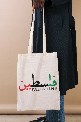 Palestine Design Tote Bag, Palestine in Arabic Calligraphy